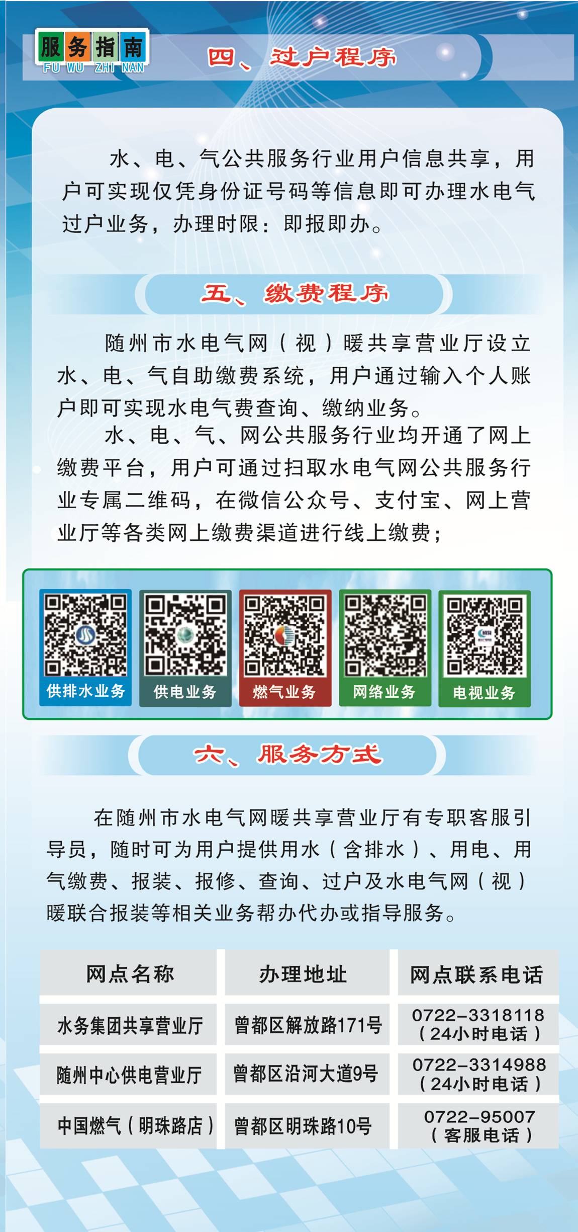 您的位置:首页 > 办事服务> 《随州市水电气网暖共享营业厅办事服务指南》