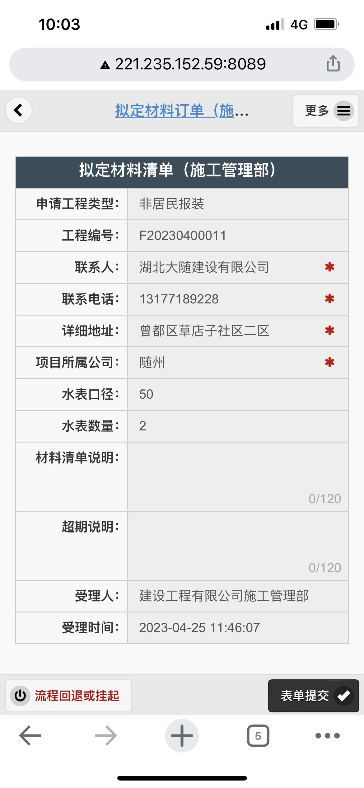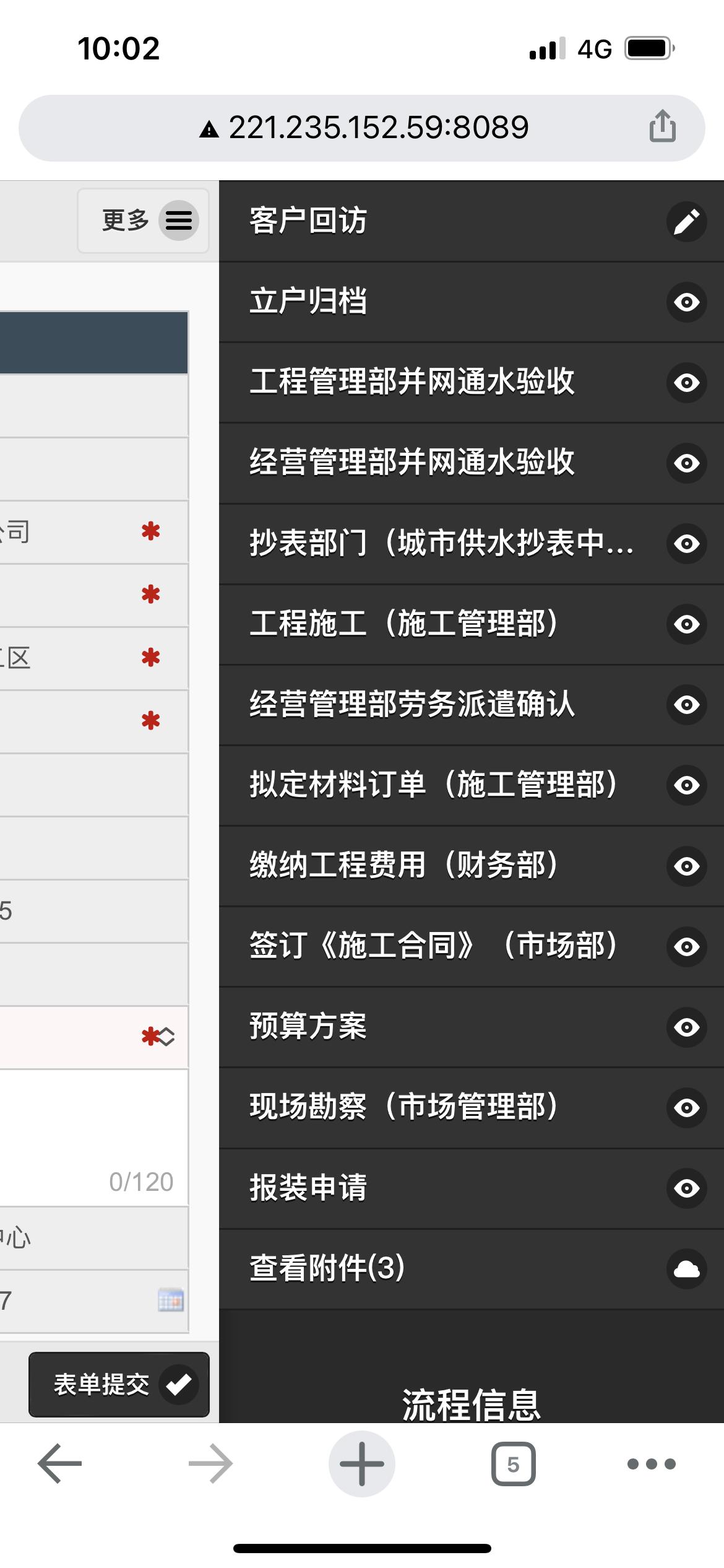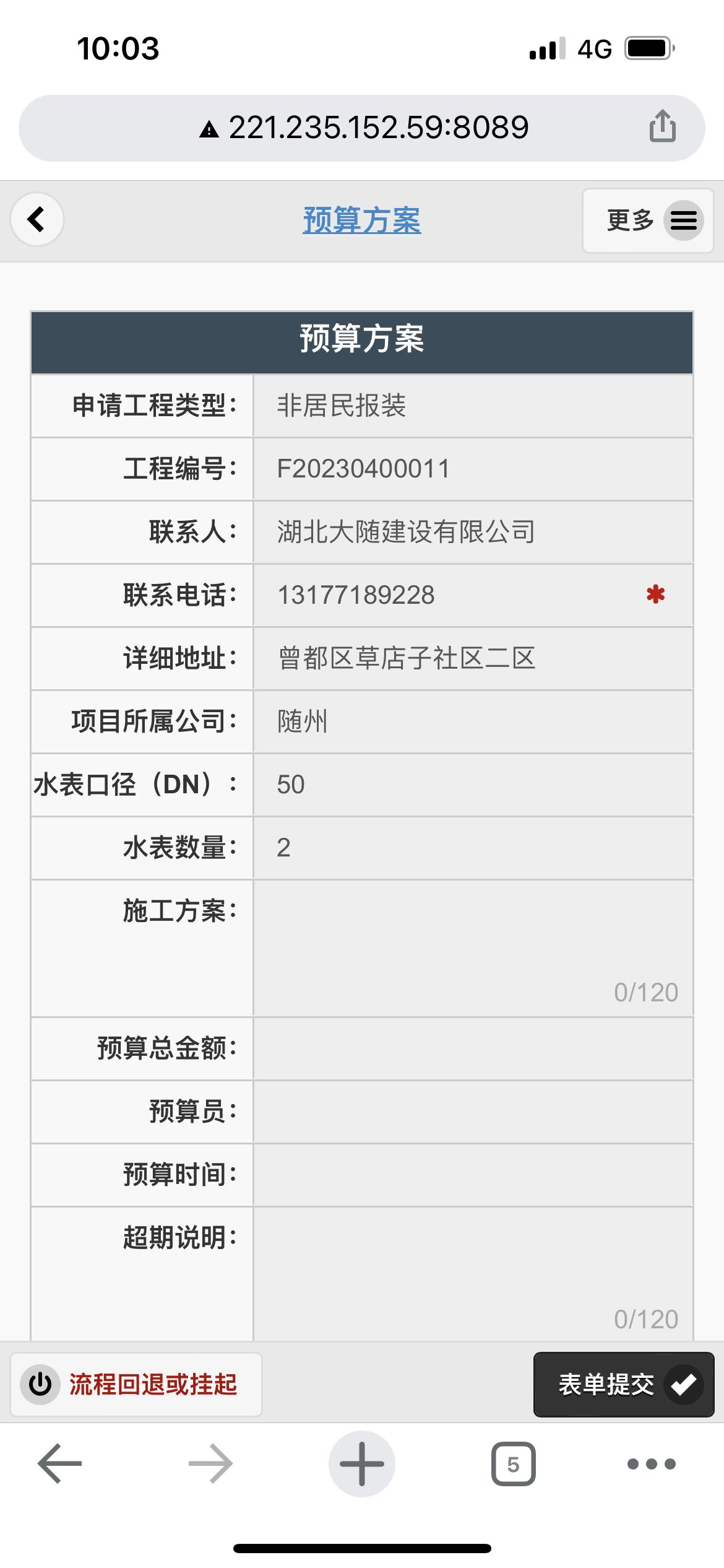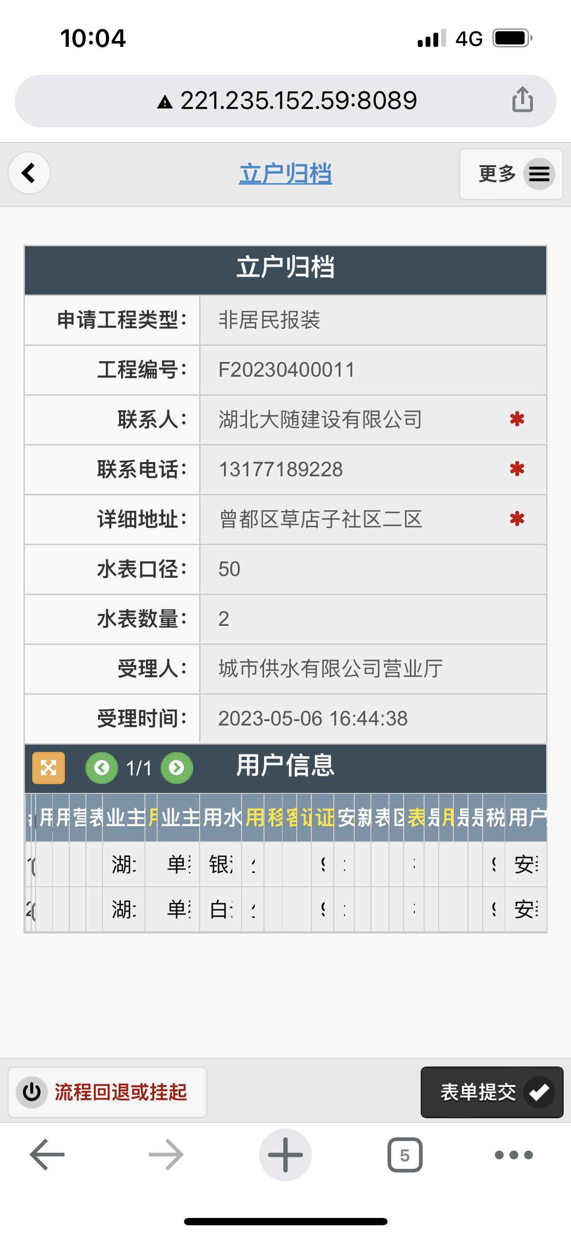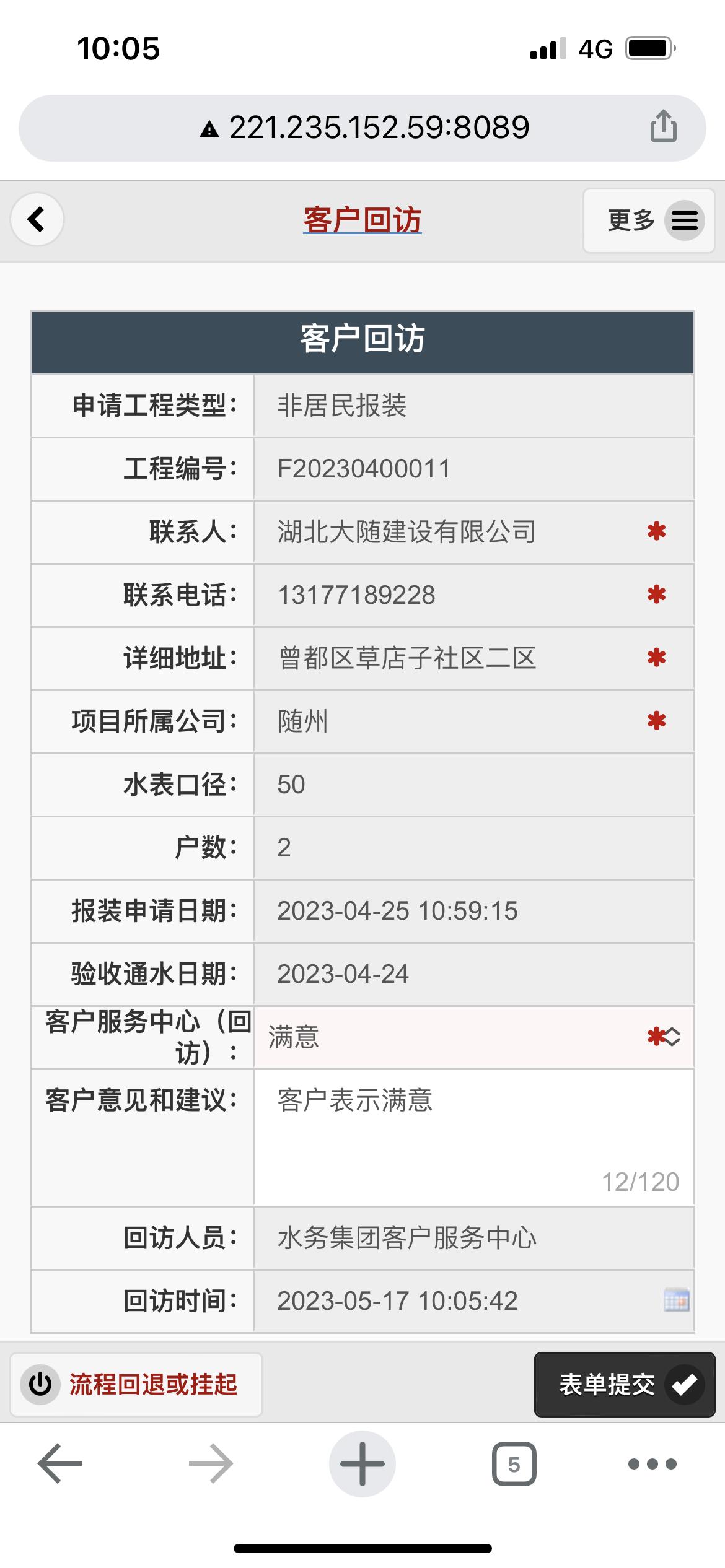 二、应用案例及实际操作界面截图(包含用水报装、现场勘查、预算方案、工程施工、验收通水、客户回访等功能)