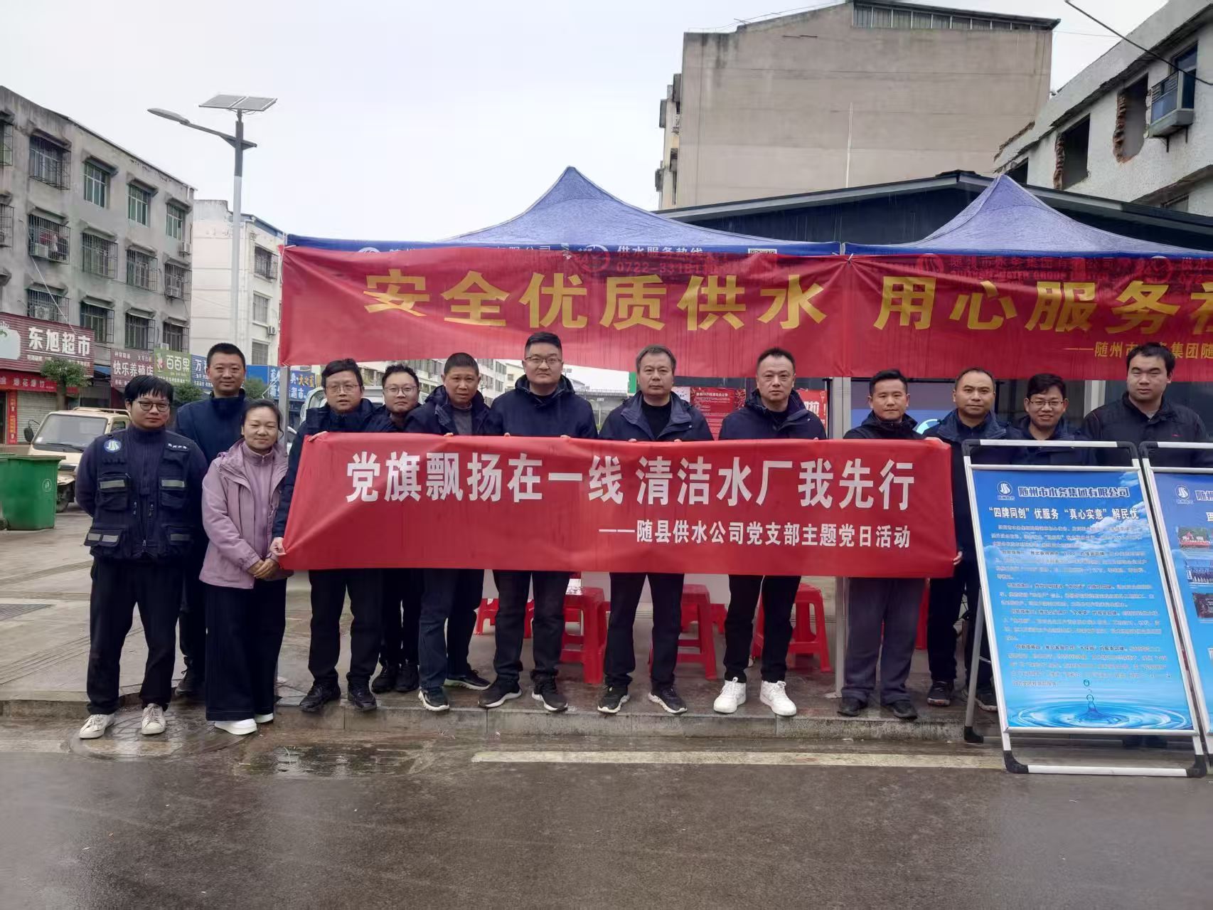 近日,水务集团随县供水公司组织党员干部走进黑龙口水厂及周边镇街,开展“党旗飘扬在一线 清洁水厂我先行”活动,以实际行动践行党员先锋作用,助力水厂环境优化、水质服务宣传,推动党建与民生服务同频共振。