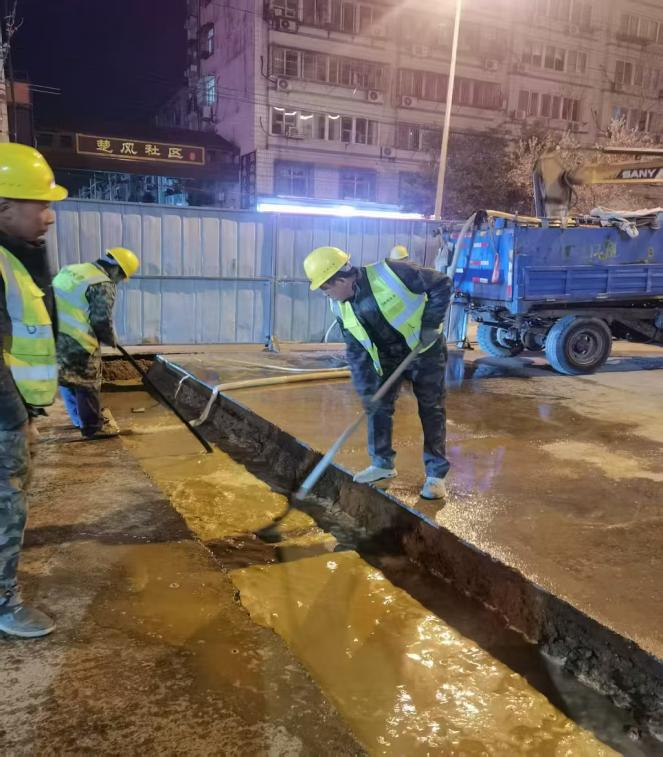 施工员和安全员组成的党员攻坚组连续作战30个小时,安全督导员严格监测,施工噪音始终控制在55分贝以下,扬尘数值较常规施工降低40%,真正实现“无声守护”。技术团队创新应用管道非开挖修复技术,将施工面压缩至传统工艺的1/3。