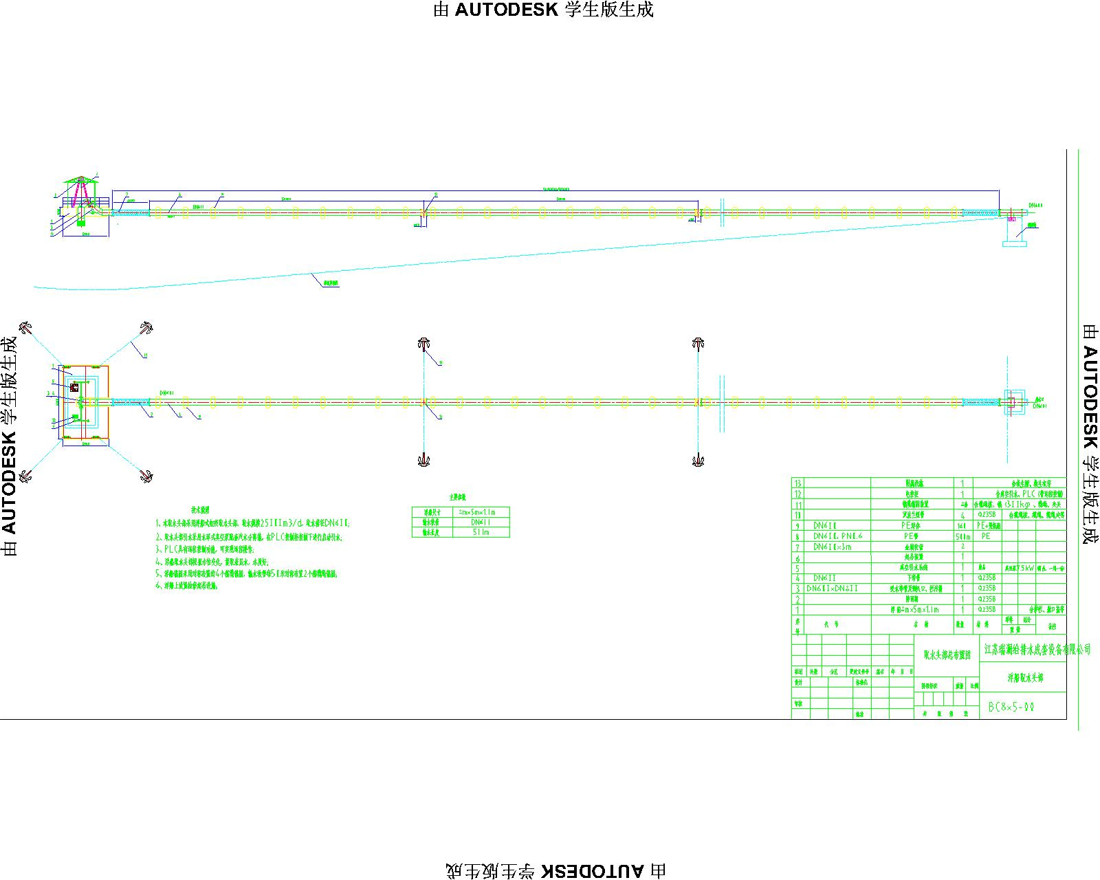 (8)取水浮船采用单输水管结构,输水管为DN600的HDPE管。