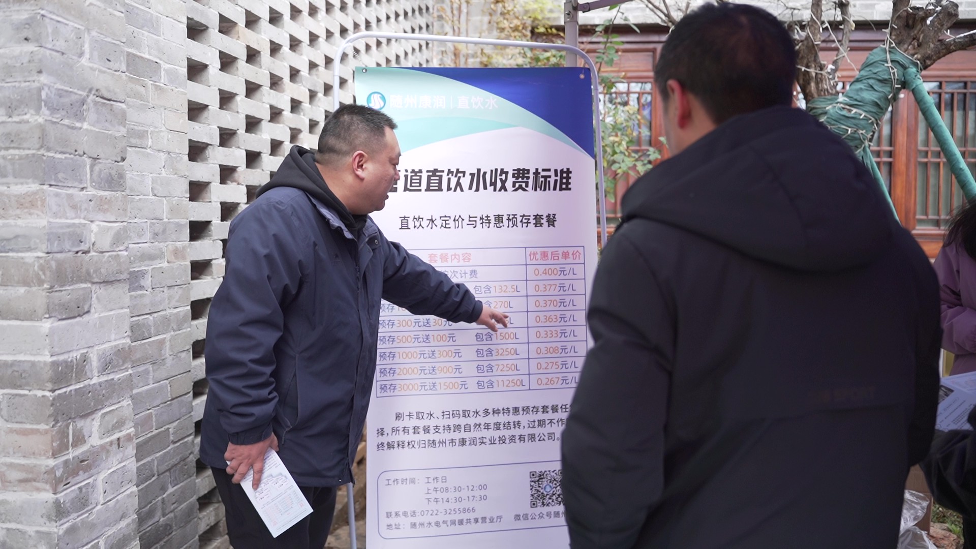 为进一步推广高品质直饮水服务,提升居民健康饮水意识,2026年元旦当日,随州市水务集团康润实业投资有限公司在草甸子历史文化街隆重举办“充值赠好礼,健康喝好水”主题宣传推广活动。活动将优质水务服务与便民理念深度融合,切实送到居民身边,让更多居民和商户亲身体验到“国企背书、水质安全、价格惠民”的高品质直饮水服务。