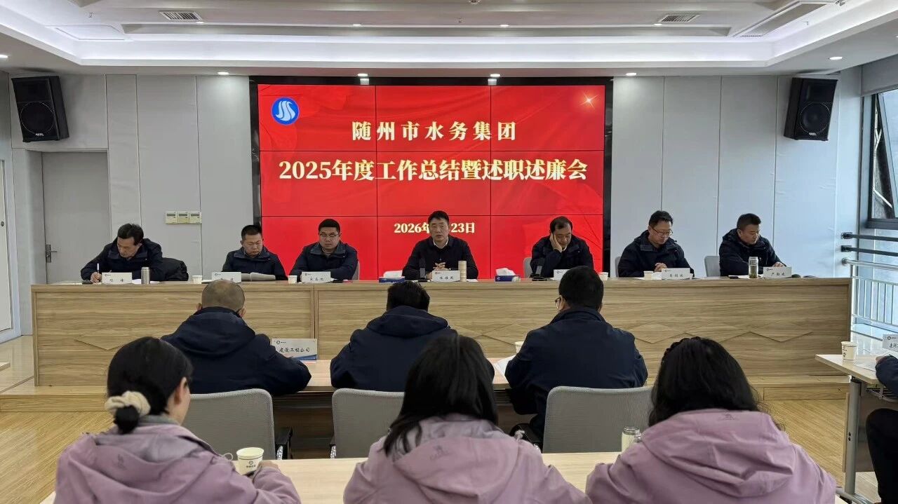 2026年1月23日,随州市水务集团2025年度工作总结暨述职述廉会议隆重召开。会议全面总结过往成效、精准谋划未来发展,凝聚推动集团高质量发展的强大合力。集团党总支书记、董事长桂维国出席并作重要讲话,党总支副书记、总经理严贤江主持会议,集团领导班子成员、各公司班子成员及全体干部职工参会。
